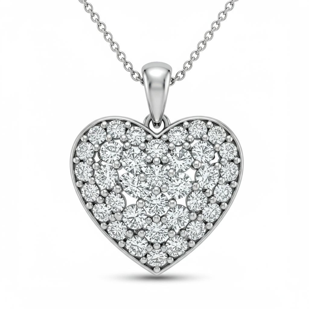 This exquisite necklace features a graceful heart pendant meticulously set with brilliant-cut diamonds. Crafted in lustrous 18KT white gold, the design symbolizes enduring love and sophistication. The diamonds are precisely pavé set, maximizing light reflection and creating a breathtaking shimmer. This piece is perfect for romantic gestures or elevating daily wear with a touch of luxury.
