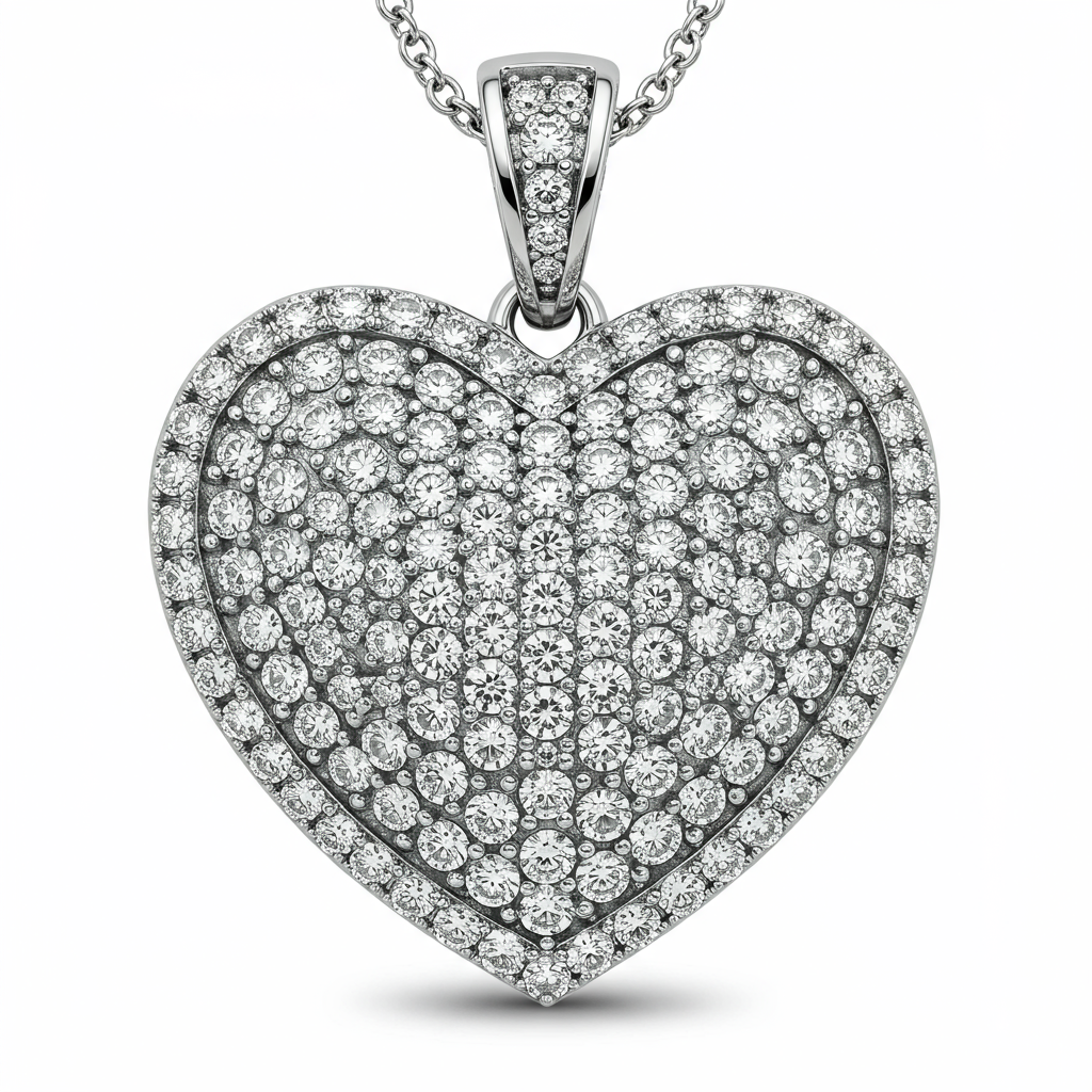 The Chrome Heart Necklace defines modern luxury with its architectural cross-heart design, meticulously crafted in radiant 18KT white gold. This iconic silhouette is fully paved with brilliant round diamonds, offering unparalleled sparkle and depth. Each VVS stone is set to perfection, reflecting light from every angle, creating a striking halo effect. This piece serves as a sophisticated statement, symbolizing enduring passion and uncompromising style for the contemporary collector.