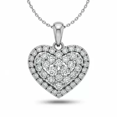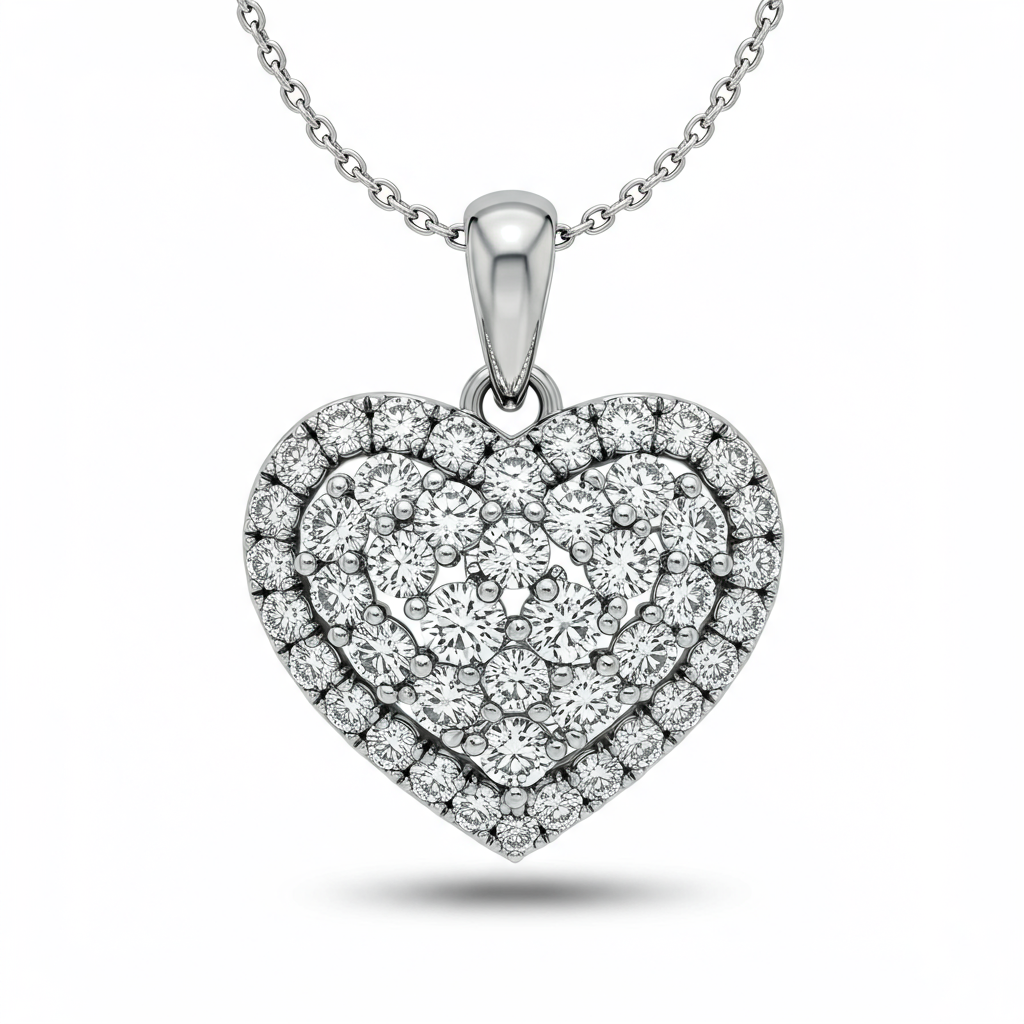 The Diamond Heart Necklace is a timeless expression of affection, meticulously crafted in radiant 18KT white gold. This delicate frame shapes the universal symbol of love, entirely paved with brilliant round-cut diamonds. Each stone is set using micro-pave technique to maximize light return, ensuring dazzling sparkle from every angle. This exquisite pendant hangs gracefully from a finely wrought chain, making it the perfect piece for eternal elegance.