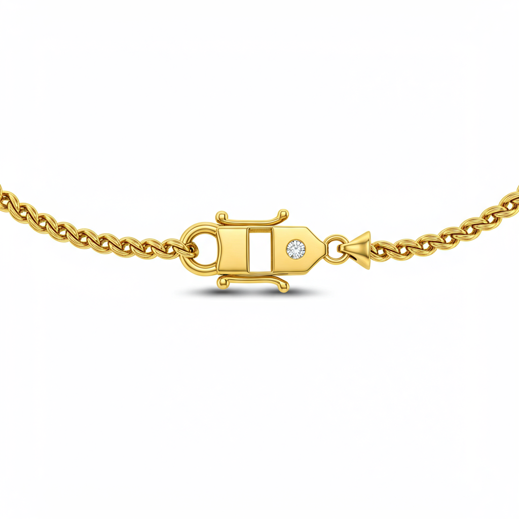This exquisite Gold Chain Necklace for women embodies timeless elegance and refined simplicity. Crafted meticulously in radiant 18KT yellow gold, its finely polished links catch the light with every movement. Designed for versatility, this delicate chain is perfect for layering or wearing solo as a signature piece. It secures with a luxury clasp accented by a single brilliant diamond, ensuring security and adding a subtle touch of sparkle. This piece is an essential foundation for any sophisticated jewelry collection.
