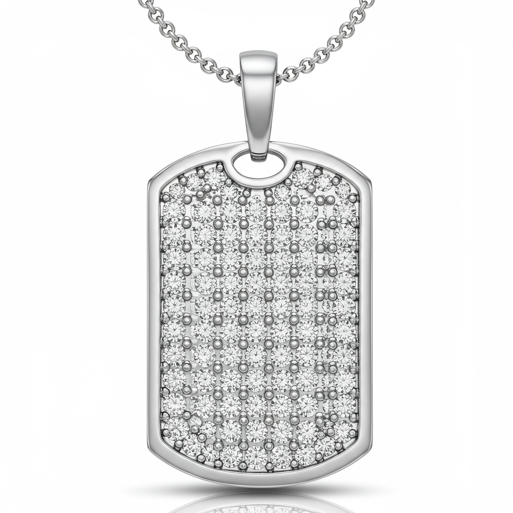 The Men'S Necklaces piece is engineered for the modern gentleman, combining rugged durability with subtle luxury. Crafted in substantial 18KT white gold, this pendant features a bold, geometric design encrusted with VVS quality diamonds. The meticulously set diamonds catch the light with remarkable brilliance, reflecting uncompromising taste. This statement accessory offers a refined yet masculine edge, perfect for daily wear or elevated occasions.