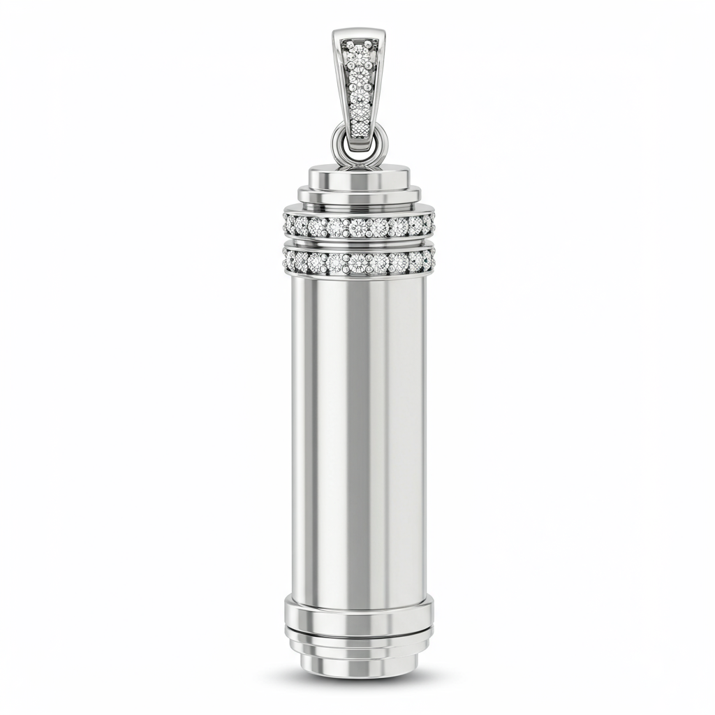 The Eternal Remembrance Urn Necklace offers a dignified and beautiful way to keep a cherished loved one close to the heart. Crafted in radiant 18KT white gold, this delicate pendant features a secure internal chamber for ashes, sealing memories within its refined form. The minimalist cylindrical design is complemented by a brilliant diamond-accented bail, symbolizing enduring light and everlasting love. This piece serves not just as jewelry, but as a sacred vessel of comfort and eternal connection.