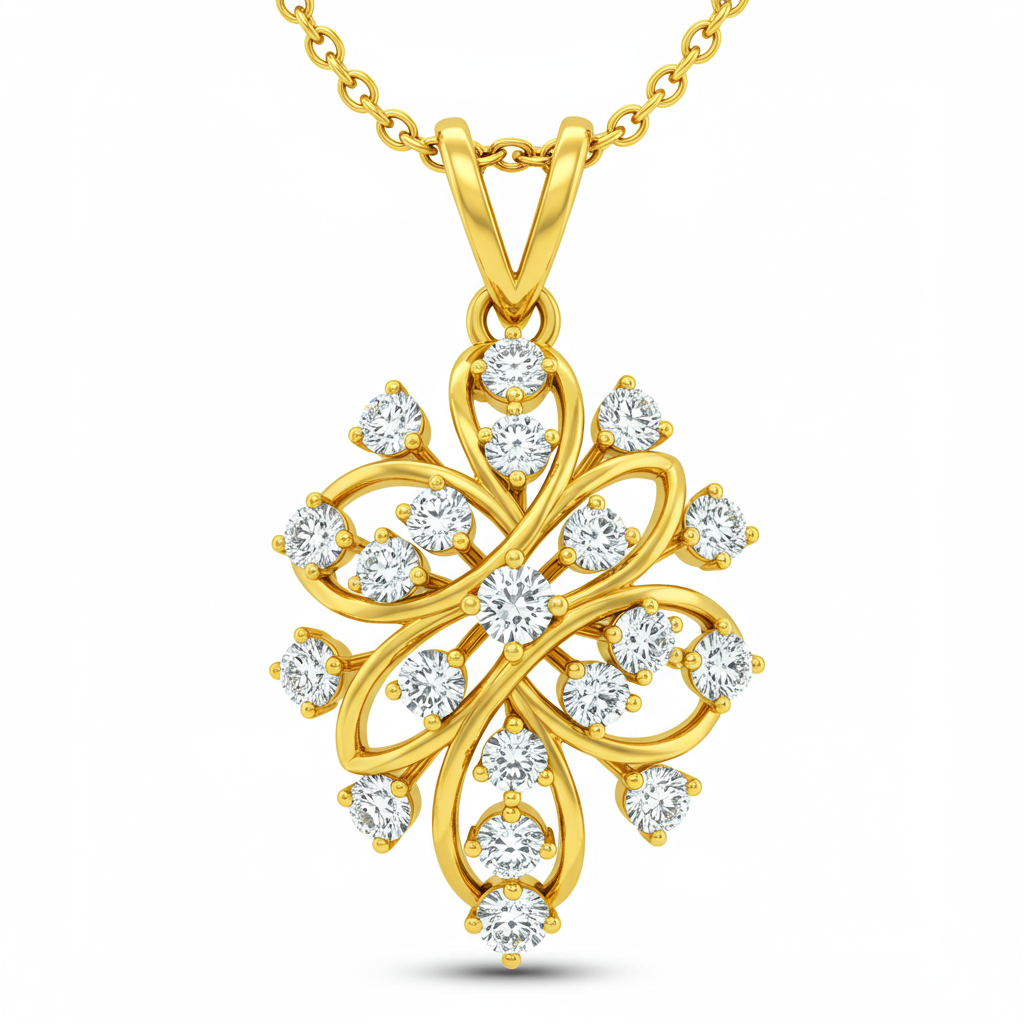 The VCA Necklace captures timeless elegance with its signature clover motif design. Crafted meticulously in radiant 18KT yellow gold, the pendant features a delicate setting paved entirely with brilliant VVS round diamonds. This iconic piece embodies sophistication, offering a statement of classic luxury suitable for both daily wear and grand occasions. The adjustable chain ensures a perfect drape, highlighting the exquisite craftsmanship of the high-end design.