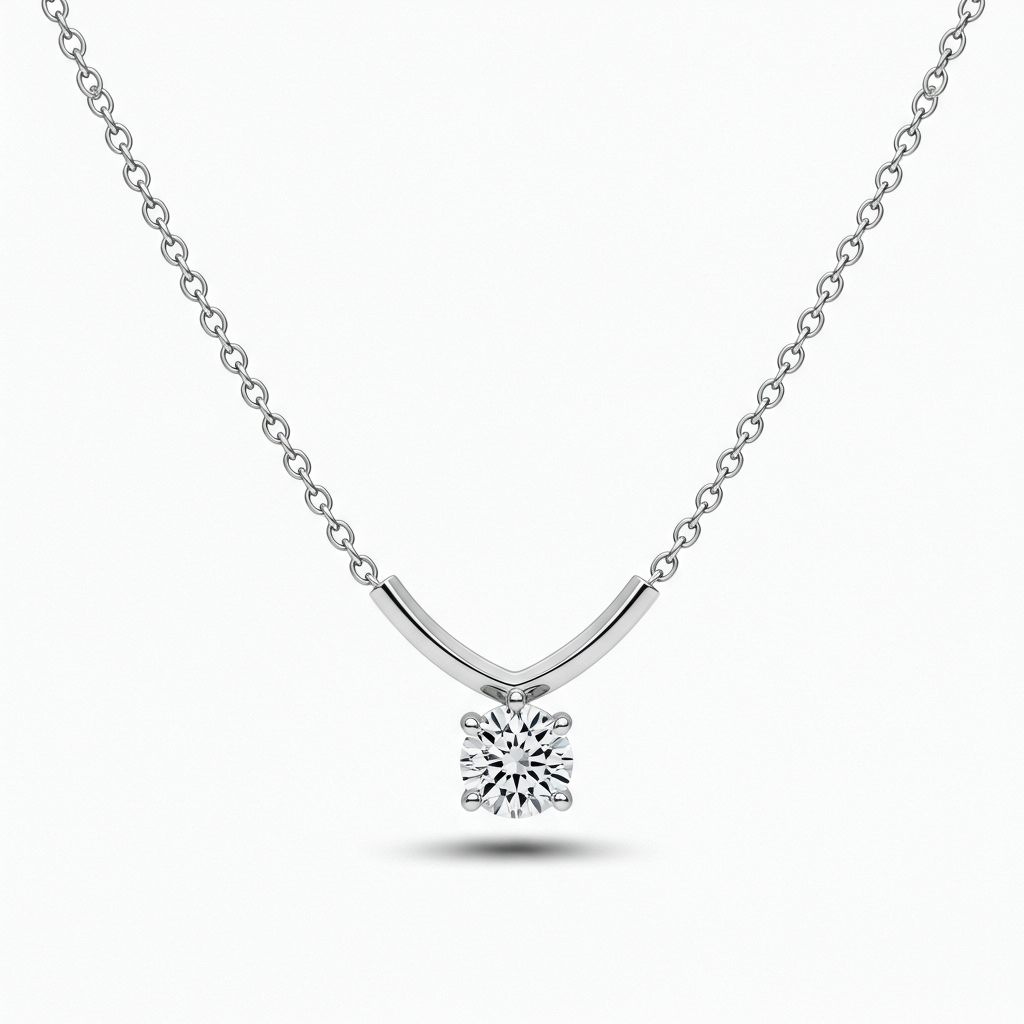 This exquisite A Necklace showcases timeless elegance with a modern interpretation of the classic solitaire. A brilliant round diamond, held securely in a minimal setting, appears to float effortlessly along the delicate 18KT white gold chain. The VVS clarity and exceptional brilliance ensure maximum light return, making this piece a stunning focal point for any attire. This necklace symbolizes enduring grace and sophisticated luxury, perfect for commemorating a special milestone.