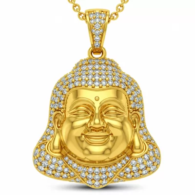 The Buddha Necklace is a profound statement piece, meticulously crafted in radiant 18KT Yellow Gold. This exquisite pendant features a serene depiction of the Buddha, fully paved with brilliant VVS diamonds, reflecting enlightenment and tranquility. The intricate detailing and superior micro-pave setting ensure maximum sparkle and enduring quality. It serves as both a beautiful adornment and a powerful symbol of peace and spiritual protection, designed for the discerning collector seeking luxury and meaning.