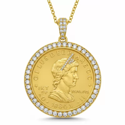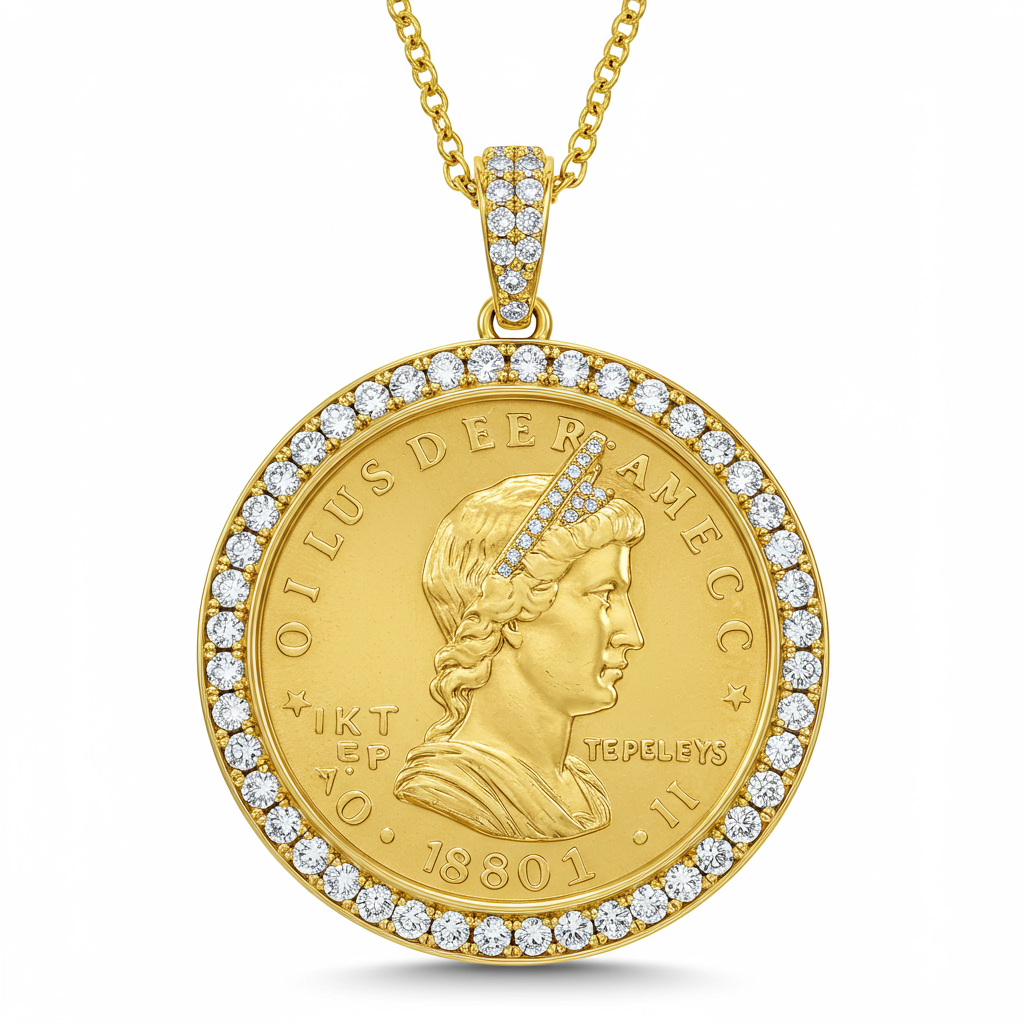 The Coin Necklace is a symbol of timeless elegance and prosperity, meticulously crafted in 18KT Yellow Gold. It features a substantial, polished coin pendant intricately bordered by brilliant-cut diamonds that catch the light from every angle. This piece seamlessly blends a classic historical motif with modern luxury detailing and superior craftsmanship. Suspended from an adjustable chain, it offers versatile styling and makes an unequivocally sophisticated statement.