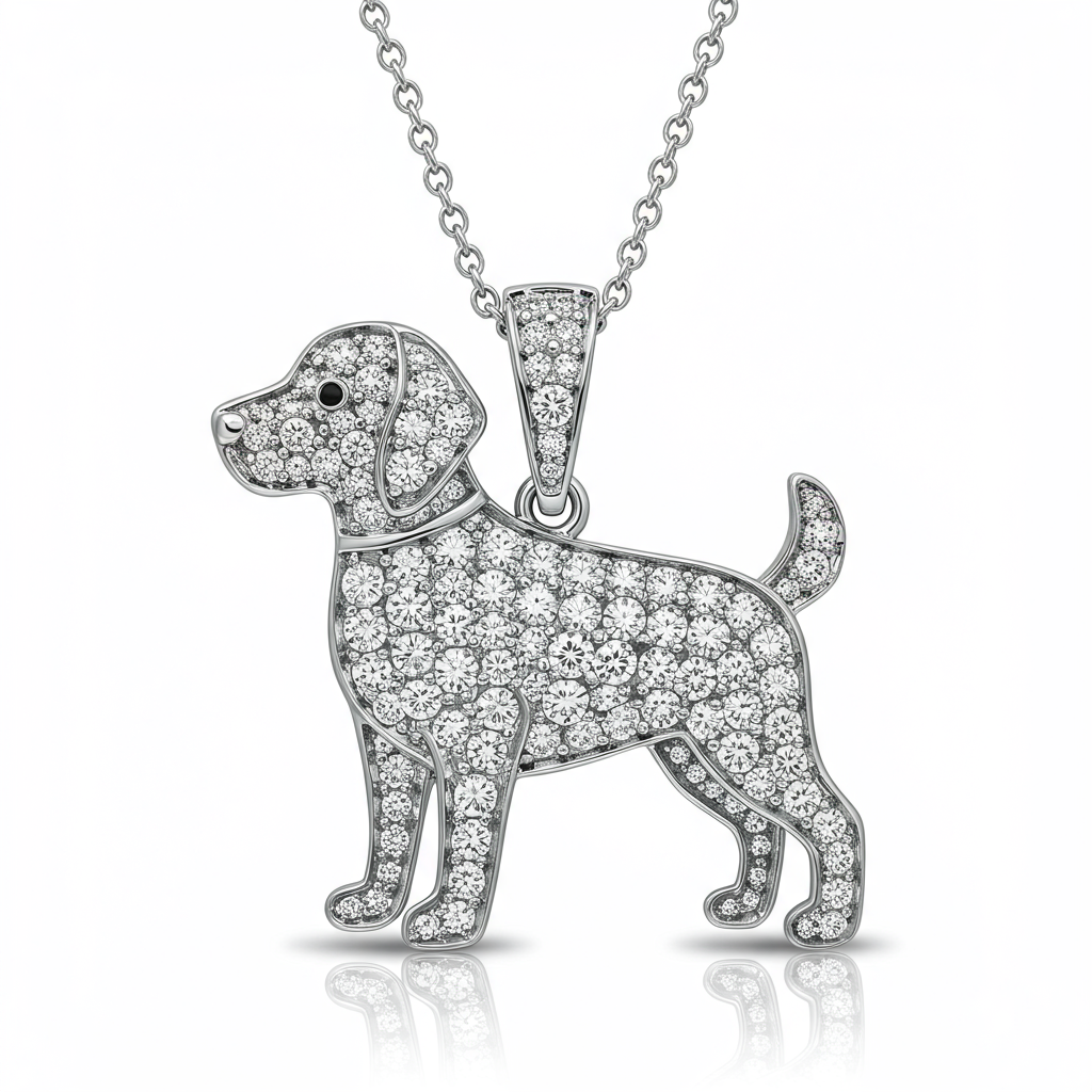 The Dog Necklace is a heartwarming tribute to canine companionship, expertly crafted in luminous 18KT white gold. This delicate pendant features a stylized dog silhouette completely paved with micro-set VVS diamonds, catching the light with unparalleled brilliance. Suspended from a slender chain, this piece offers a timeless blend of luxury and sentimentality. It serves as an elegant everyday accessory and a cherished keepsake for any dog lover.