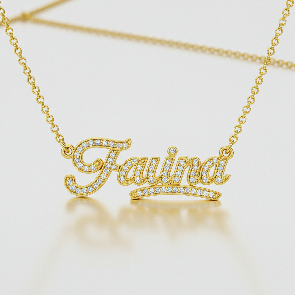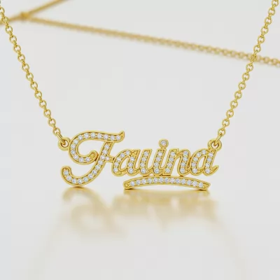 Capture your identity with this exquisite Gold Name Plate Necklace, a timeless piece designed for personal expression. Crafted in luxurious 18KT gold, the custom nameplate is meticulously polished to a mirror finish. Subtle accents of brilliant VVS diamonds add a delicate sparkle, outlining the silhouette of the personalized script. This bespoke necklace is an heirloom-quality treasure, perfect for everyday sophistication or as a meaningful gift.