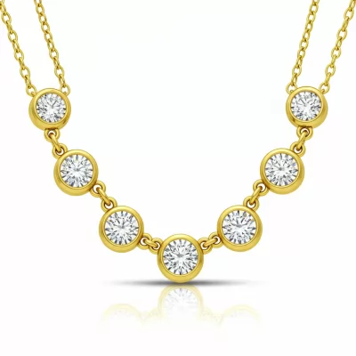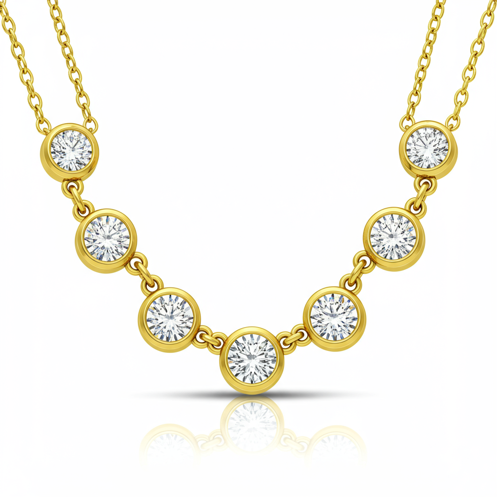 This elegant 14K yellow gold necklace features a delicate, enduring chain accented by five perfectly placed diamond stations. Each station is set with brilliant round diamonds of VVS clarity, offering unparalleled sparkle and sophistication. The minimalist design ensures exceptional versatility, making it ideal for layering or wearing as a striking standalone piece. This necklace embodies subtle luxury and timeless grace, designed for the modern connoisseur of fine jewelry.