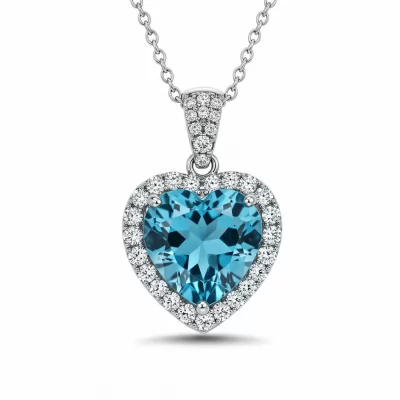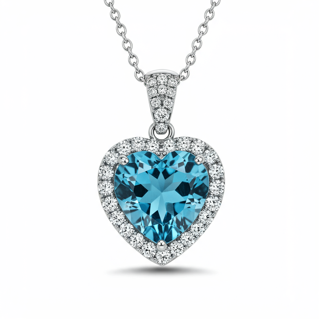 The Heart Of The Ocean Necklace is a breathtaking tribute to timeless romance, featuring a colossal, heart-shaped blue topaz centerpiece. This vibrant 16.5-carat gem is encircled by a dazzling halo of VVS round brilliant diamonds that continue up the delicate bail. Set in polished 18KT white gold, the design captures light from every angle, creating an unparalleled brilliance. Suspended from a delicate yet sturdy chain, this piece is designed to be a definitive statement of luxury and elegance, perfect for grand occasions. The meticulous craftsmanship ensures this iconic jewel is a centerpiece for any collection.