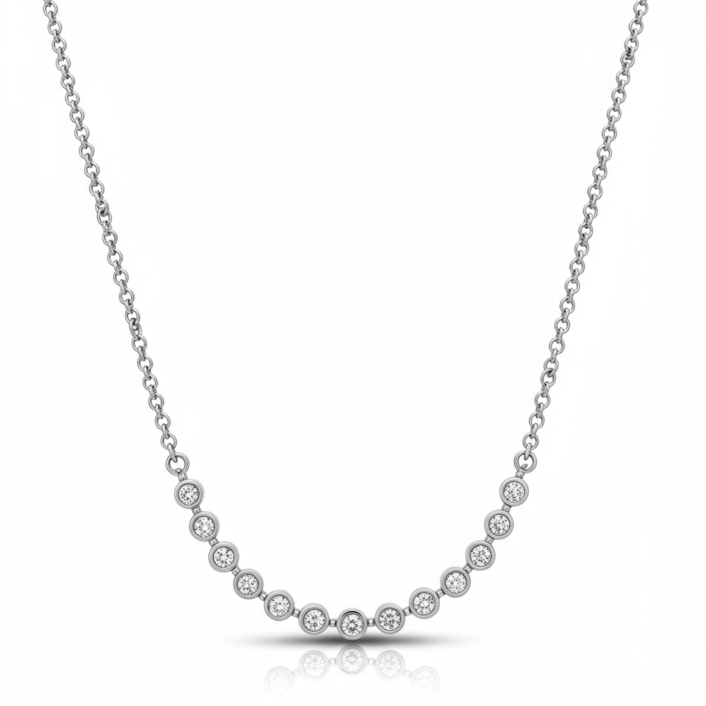 The Homer Necklace is a masterpiece of linear elegance, featuring meticulously spaced diamond stations along a delicate 18KT white gold chain. Each station holds a brilliant VVS diamond, carefully chosen for exceptional sparkle and fire. This design balances modern minimalism with timeless luxury, making it perfect for layering or wearing as a striking standalone piece. It offers versatile sophistication suitable for both daily wear and grand evening events.