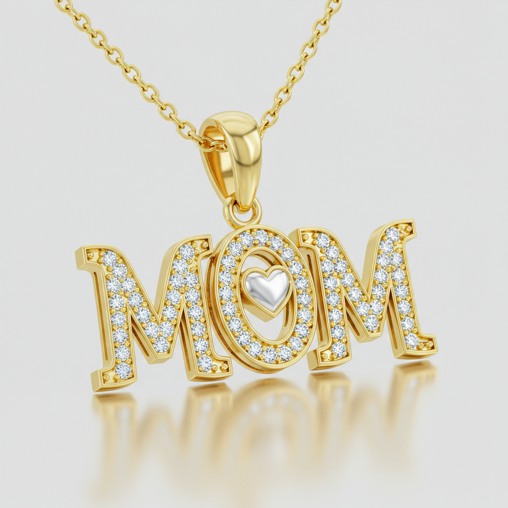 Celebrate the enduring bond of motherhood with this exquisite Mothers Day Mom Necklace. This delicate pendant, crafted in luminous 18KT yellow gold, elegantly spells out 'MOM' in a contemporary script font. Each letter is meticulously set with brilliant-cut diamonds, showcasing superior VVS clarity and G color for maximum sparkle. Suspended from a slender adjustable chain, this piece serves as a timeless expression of gratitude and love, perfect for gifting on any special occasion.