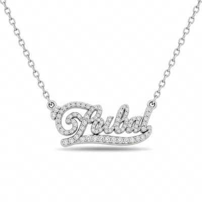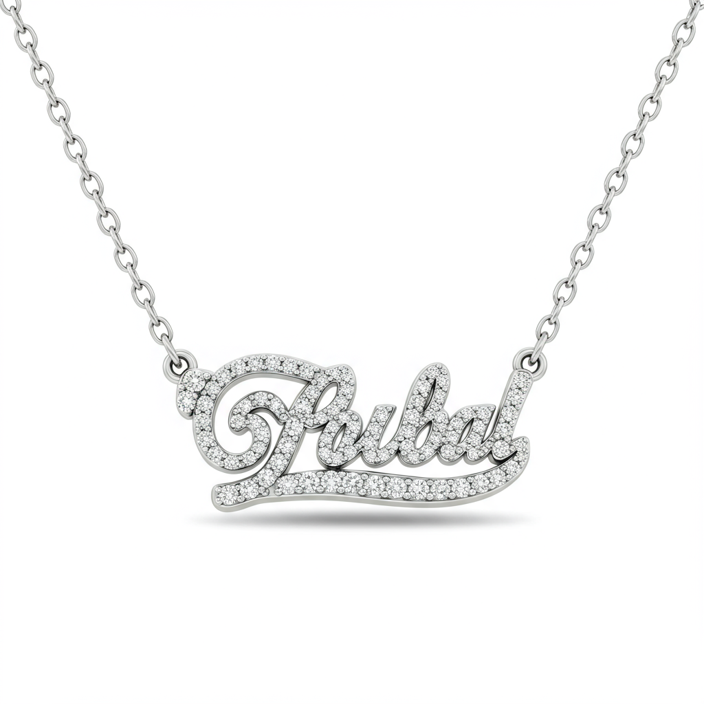 The Name Necklace collection offers the ultimate statement in personalized luxury, meticulously crafted in 18KT gold. Each letter is set with brilliant round VVS diamonds, catching the light with every movement. This elegant piece perfectly fuses contemporary style with deep sentimental value, allowing you to carry a cherished identity close to your heart. It features a delicate yet durable chain, designed for comfortable, everyday wear while maintaining a show-stopping appearance.