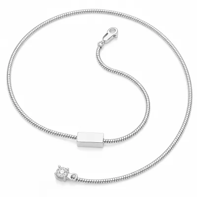 The Necklace Length collection introduces ultimate versatility to your fine jewelry wardrobe. Crafted in luminous 18KT white gold, this adjustable chain features a brilliant round diamond accent, allowing you to perfectly tailor the drop length for any neckline or layering combination. Designed for seamless transition from day to evening, it combines meticulous craftsmanship with elegant practicality. This piece is an essential staple for the modern connoisseur seeking adaptable luxury.