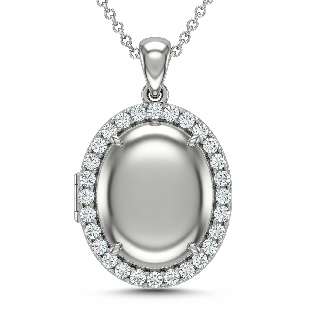 The Picture Necklace offers an exquisite way to immortalize a cherished memory, blending sentiment with sophisticated design. Crafted in luminous 18KT white gold, the central oval locket features a delicate diamond halo, meticulously set with VVS clarity stones. This piece allows for personalized photo insertion, transforming the pendant into a deeply meaningful heirloom. It hangs gracefully from a finely polished adjustable chain, perfect for everyday wear or special occasions. This necklace is the ultimate expression of personal luxury and enduring love.