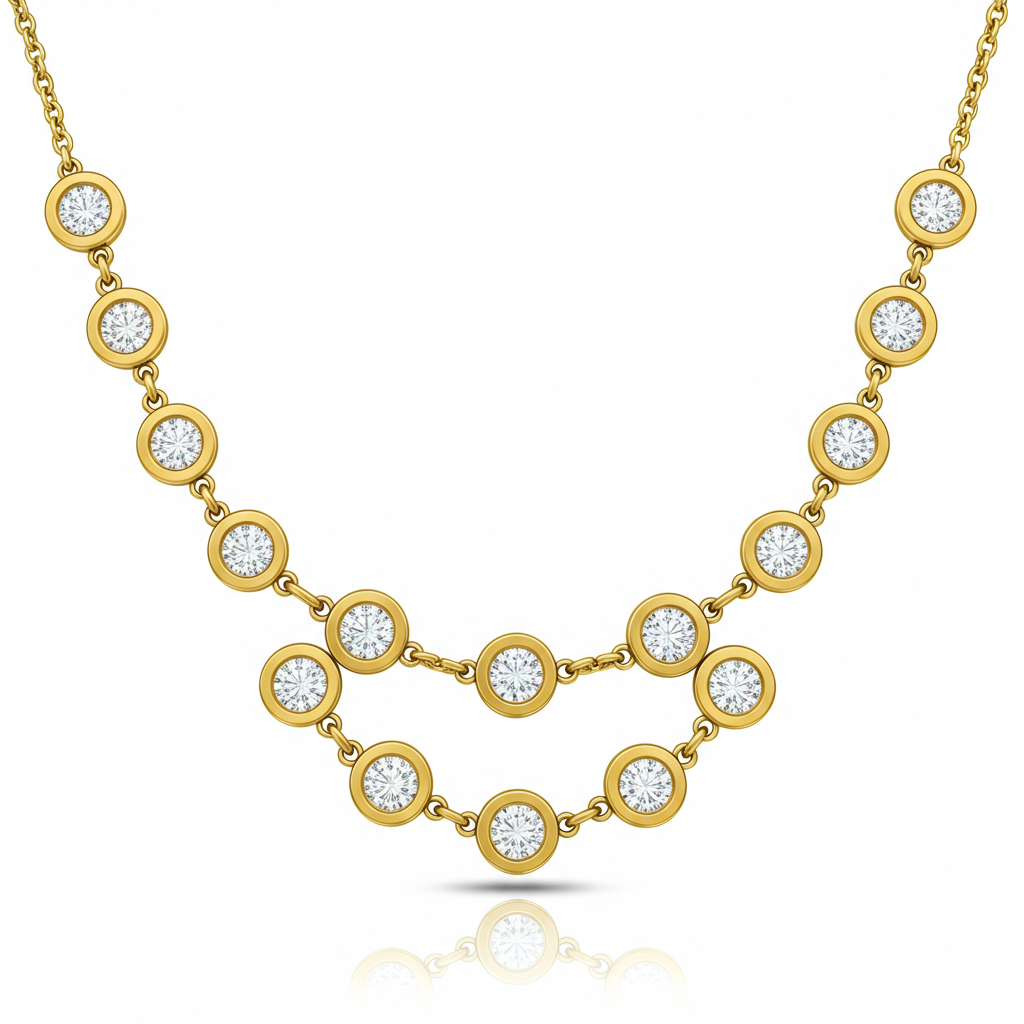 This Roberto Coin inspired necklace embodies understated luxury and Italian elegance. Crafted in radiant 18KT yellow gold, the delicate chain is punctuated by exquisitely placed brilliant-cut diamond stations, offering continuous sparkle. The design is subtly finished with the signature hidden ruby, a symbol of good fortune. This timeless piece is perfect for layering or wearing as a striking solo statement.