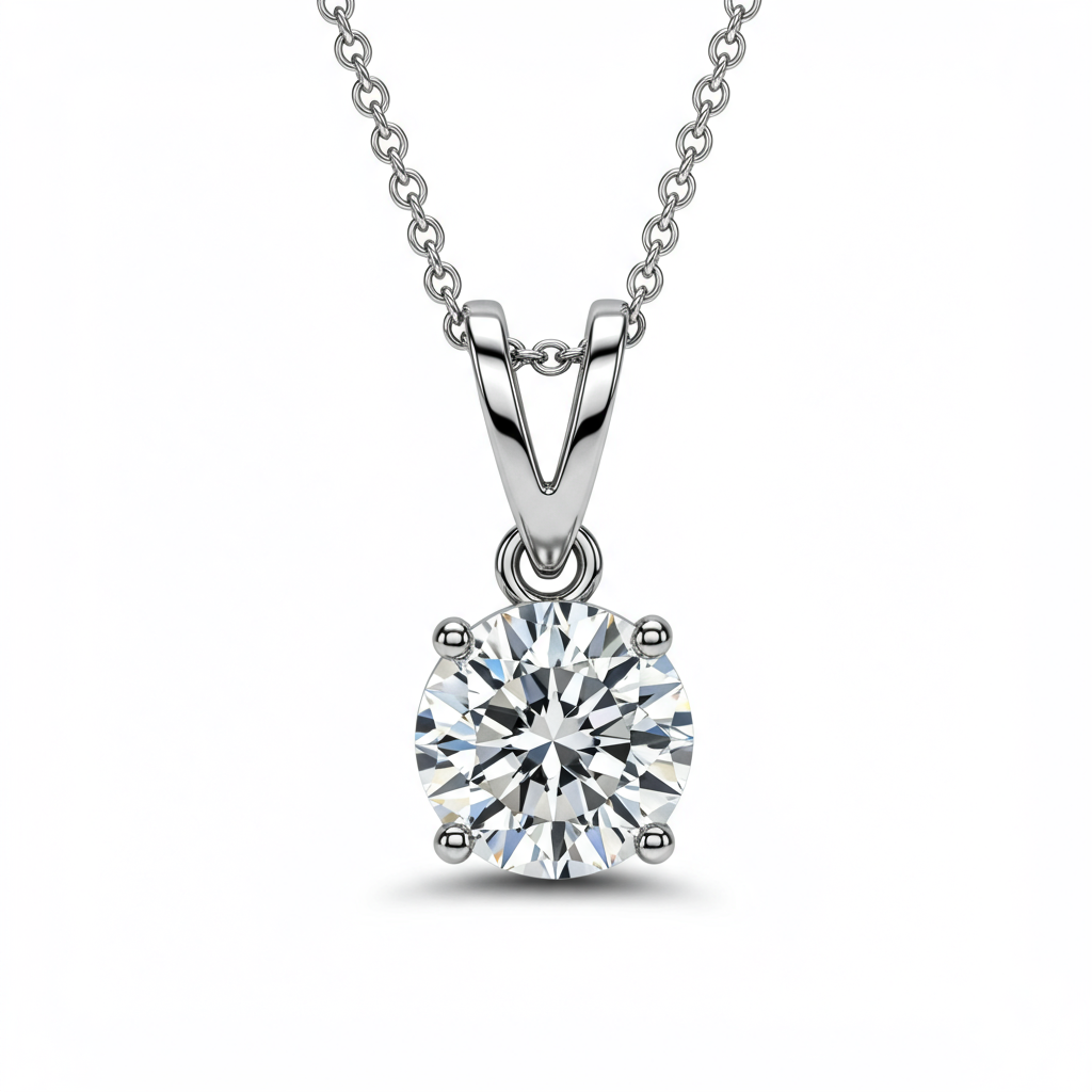 This elegant Silver Necklace for Women features a striking central solitaire diamond, capturing light with unmatched brilliance. The highly polished sterling silver setting ensures timeless durability and a lustrous shine. Suspended from a delicate yet sturdy chain, this piece offers sophisticated minimalism perfect for both daily wear and special occasions. It is a quintessential addition to any fine jewelry collection, embodying grace and modern design.