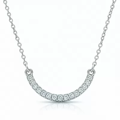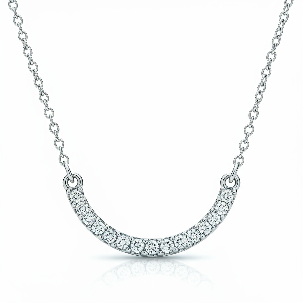 The Tiffany Smile Necklace embodies modern elegance with its gracefully curved bar pendant. Meticulously crafted in luminous 18KT white gold, the piece is completely illuminated by a continuous line of brilliant pave-set VVS diamonds. This iconic design captures light from every angle, creating a captivating sparkle that symbolizes joy and optimism. Suspended on a fine adjustable chain, this necklace offers a sophisticated and subtle statement perfect for everyday wear or layering.