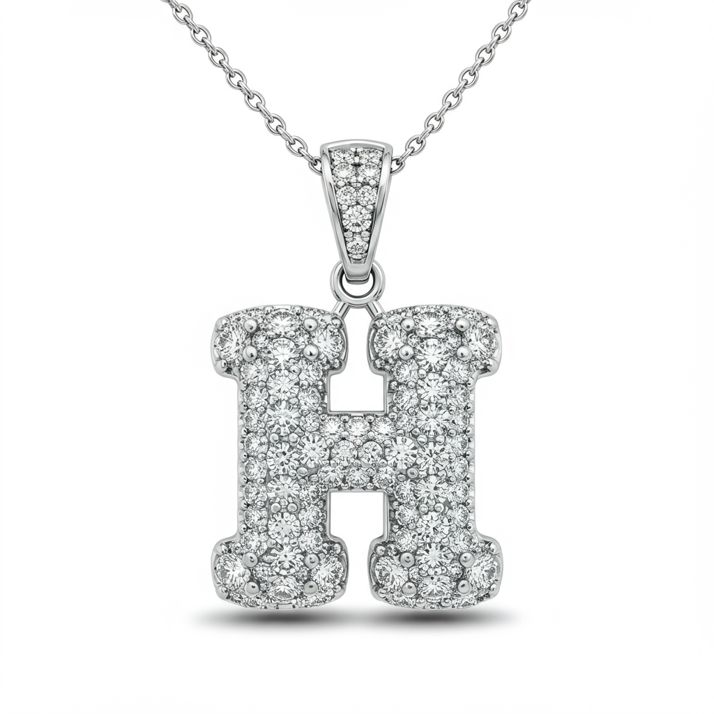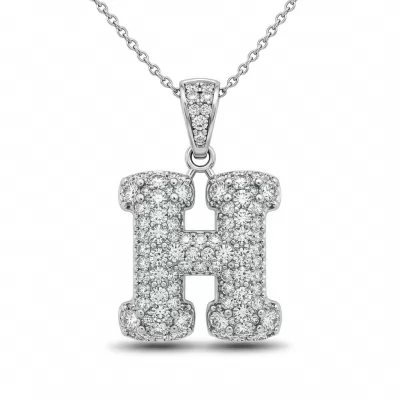 The Bubble Initial Necklace is a playful yet sophisticated piece, crafted in luminous 18KT white gold. This personalized pendant features a bold, rounded letter silhouette completely covered in a shimmering pave of exquisite VVS diamonds. Suspended on a delicate yet durable chain, the 'bubble' design offers a modern, voluminous aesthetic. This necklace serves as the ultimate statement of self-expression or a meaningful gift, capturing elegance and individuality effortlessly.