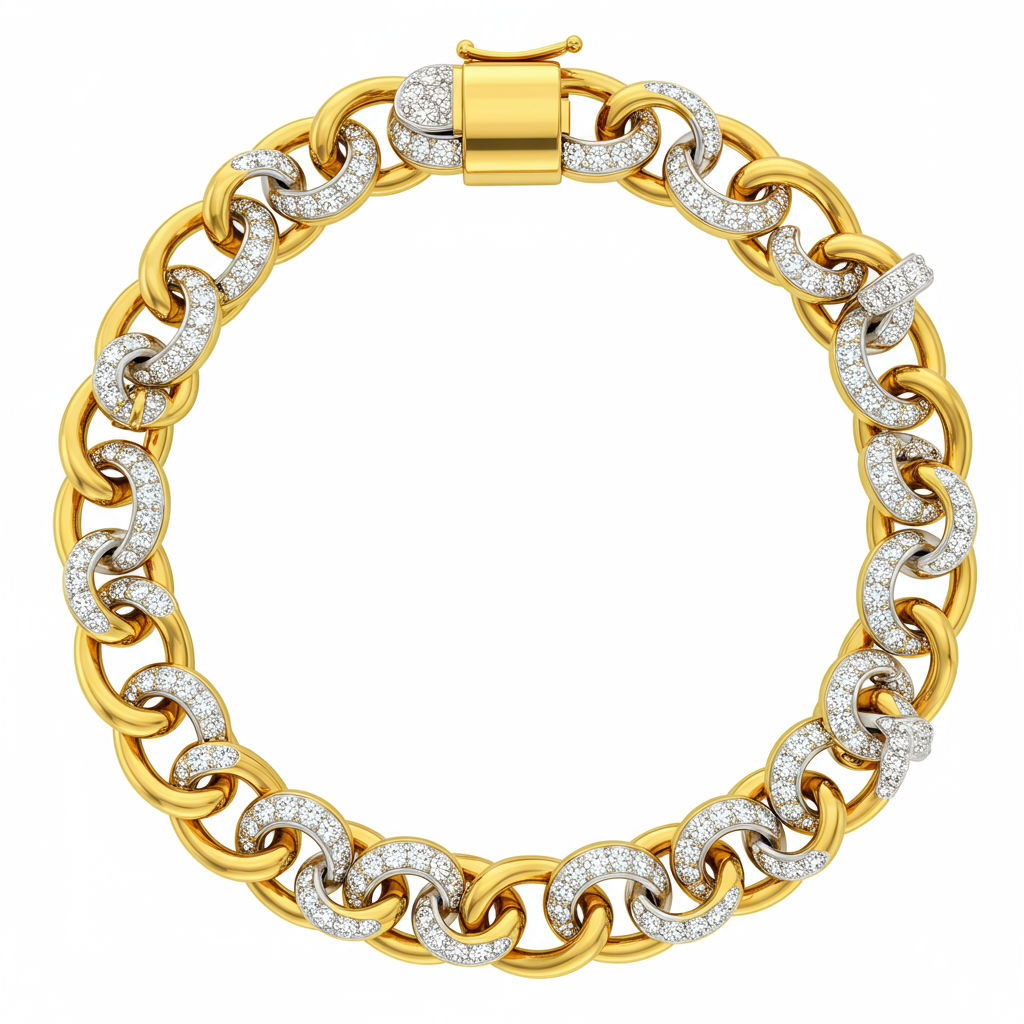 This Chain Link Necklace redefines modern sophistication, seamlessly blending architectural design with brilliant luxury. Crafted in rich 18KT yellow gold, the alternating large and small links create a bold yet elegant silhouette perfect for layering or wearing solo. Select links are meticulously set with micro-pave diamonds, adding subtle flashes of light with every movement. This statement piece is a testament to contemporary craftsmanship and enduring style.