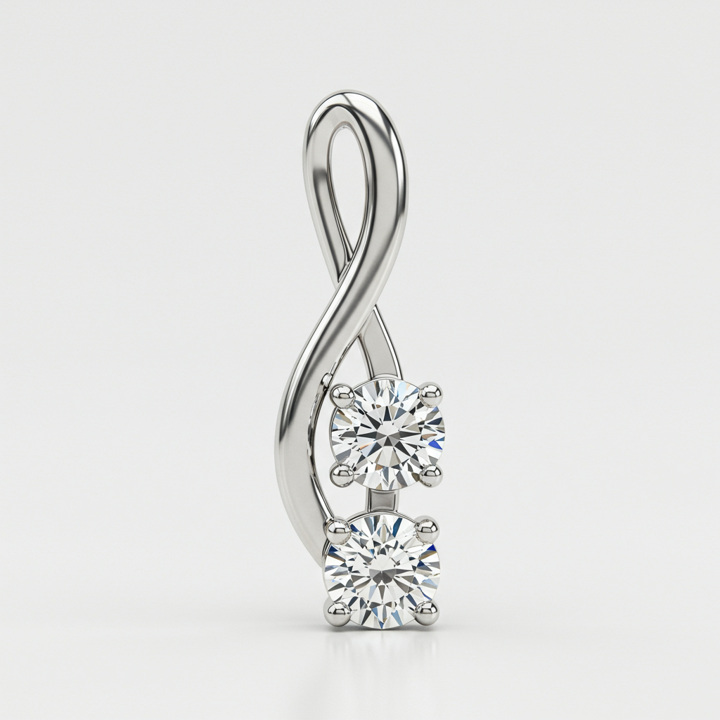 Celebrate the everlasting bond with this exquisite Mother and Daughter pendant, featuring two perfectly matched brilliant-cut diamonds symbolizing their eternal connection. Crafted in lustrous 18KT white gold, the delicate design ensures lightweight wearability and enduring elegance. This piece is a heartfelt tribute, designed to be passed down through generations. The central diamonds are framed by a subtle halo of accent stones, enhancing their magnificent sparkle.