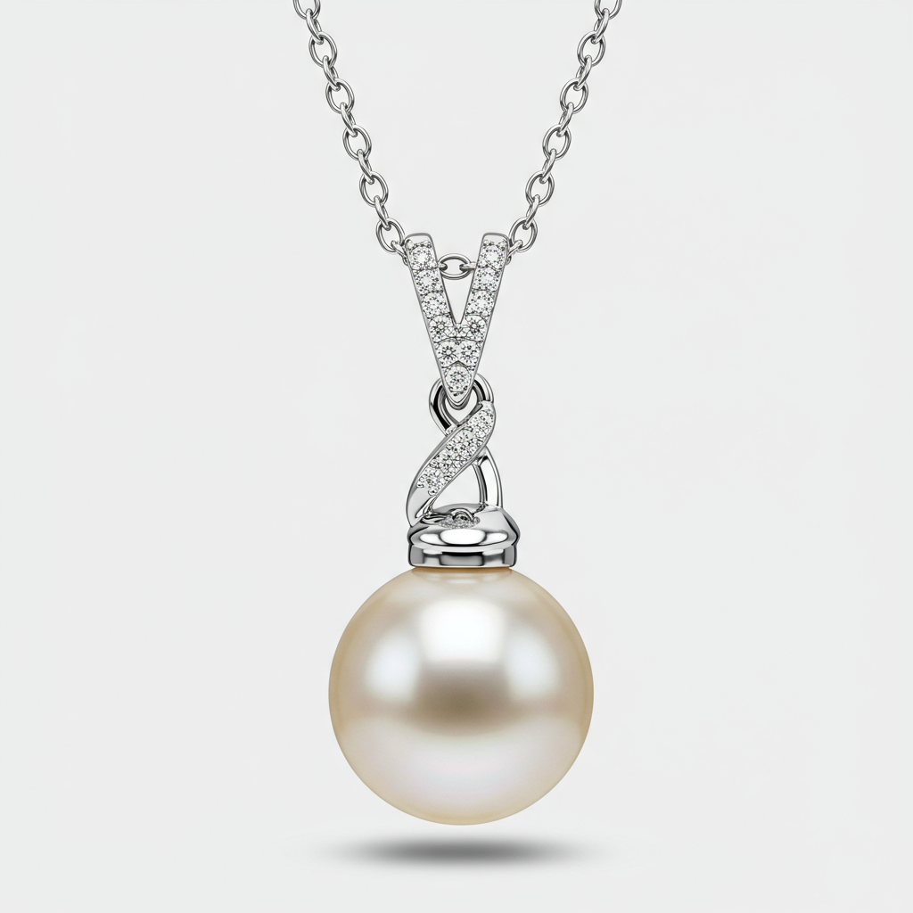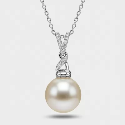 The Pearl Pendant Necklace is a masterpiece of timeless sophistication and luxury. Featuring a flawless, creamy South Sea Cultured Pearl suspended from a meticulously crafted 18KT white gold bail. This bail is exquisitely adorned with micropavé set VVS diamonds, adding a subtle yet brilliant sparkle that catches the light. This pendant perfectly balances classic elegance with modern high-end design, making it an essential piece for any discerning jewelry collection. It is the definitive statement of refined taste.
