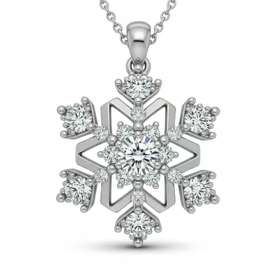 The Snowflake Necklace captures the delicate and intricate beauty of a freshly fallen snow crystal, rendered in enduring luxury. This exquisite pendant is meticulously crafted from 18KT white gold, providing a brilliant canvas for the dazzling diamonds. The geometric cluster setting maximizes light return, ensuring a spectacular, fiery sparkle with every movement. It is an heirloom piece designed to symbolize unique beauty and everlasting elegance.