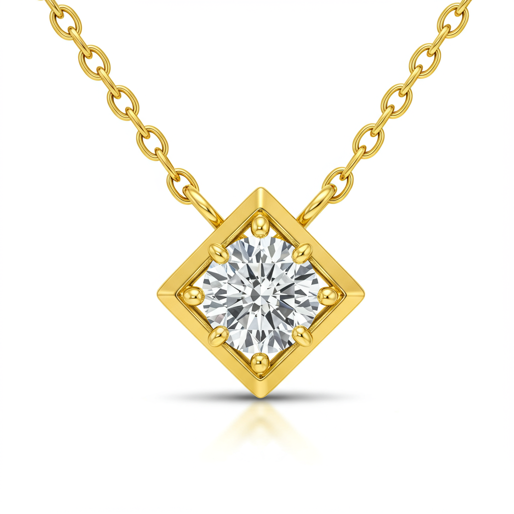 This exquisite 14 Karat Gold Necklace captures timeless elegance in a minimalist design. A perfectly proportioned solitaire diamond, chosen for its exceptional VVS brilliance, is secured in a classic four-prong setting. The delicate link chain allows the pendant to rest gracefully, catching the light with every movement. This piece serves as the ultimate luxurious staple, ideal for everyday wear or sophisticated evening events.