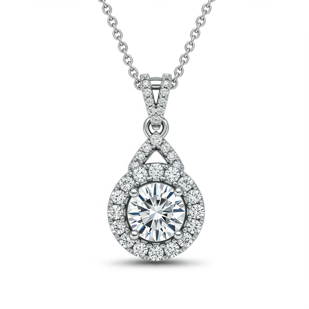 The Arwen Necklace embodies timeless grace, featuring a brilliant 0.75 carat solitaire diamond encircled by a delicate micro-pave halo. Expertly crafted in highly polished 18KT white gold, this piece maximizes light reflection and sparkle from every angle. The VVS clarity diamonds ensure unparalleled fire and brilliance, making it a true statement of enduring sophistication. Suspended from a slender chain, the pendant rests perfectly to illuminate the décolletage with celestial light.