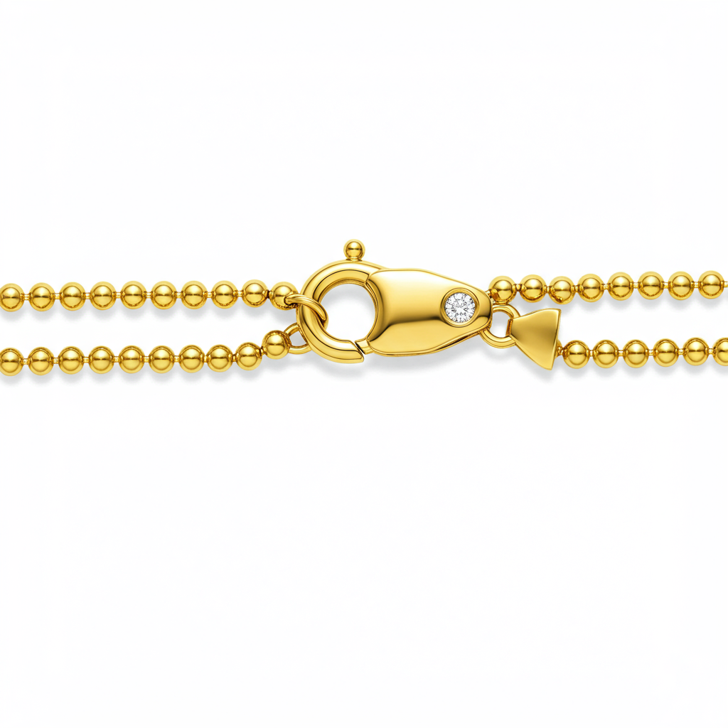The Ball Chain Necklace is a modern interpretation of a classic design, crafted in luminous 18KT yellow gold. Its signature articulation, featuring perfectly polished spherical links, creates a fluid drape that catches the light beautifully. This essential piece offers versatile styling, perfect for layering with pendants or wearing solo as a sophisticated statement. Secured with a robust lobster clasp detail accented by a single diamond, it embodies everyday luxury and impeccable craftsmanship.