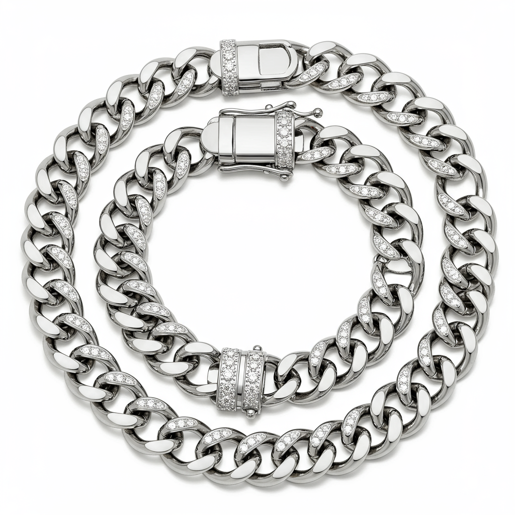 The Chunky Silver Necklace is a contemporary statement piece, meticulously crafted in highly polished 18KT white gold. Its bold, interlocking links create a substantial silhouette that captures modern luxury and undeniable flair. This substantial design is perfectly weighted, providing a comfortable yet commanding presence around the neck. Ideal for layering or worn solo, this necklace redefines essential glamour and sophisticated style.