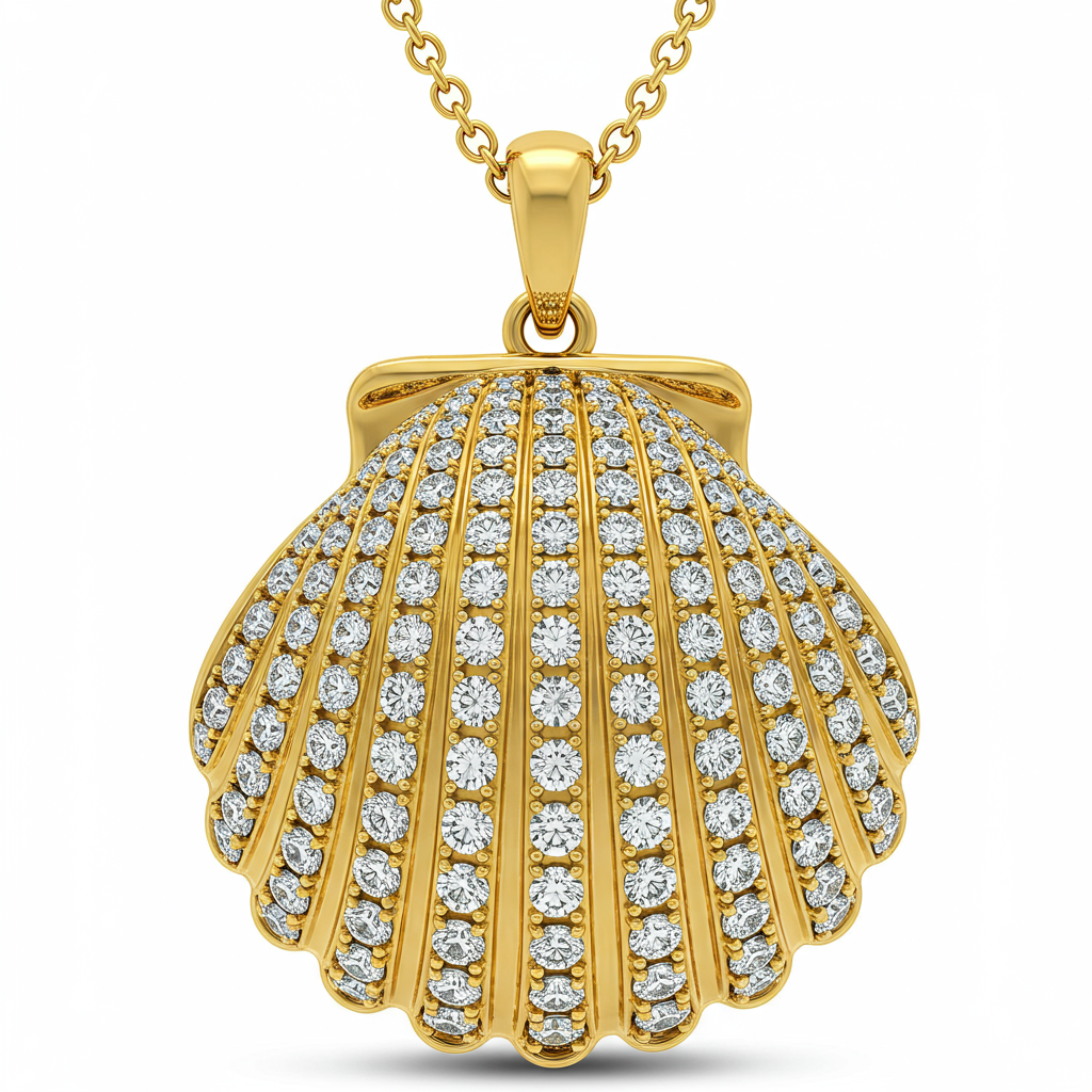 A contemporary tribute to oceanic beauty, the Cowrie Shell Necklace features a meticulously rendered cowrie shell pendant crafted in rich 18KT Yellow Gold. The surface is adorned with micro-pave set VVS diamonds, creating a brilliant, textured sparkle that catches the light. Suspended from a delicate adjustable chain, this piece embodies organic elegance and is perfect for layering or wearing as a striking solitaire statement. This luxurious piece marries fine craftsmanship with nature-inspired design.