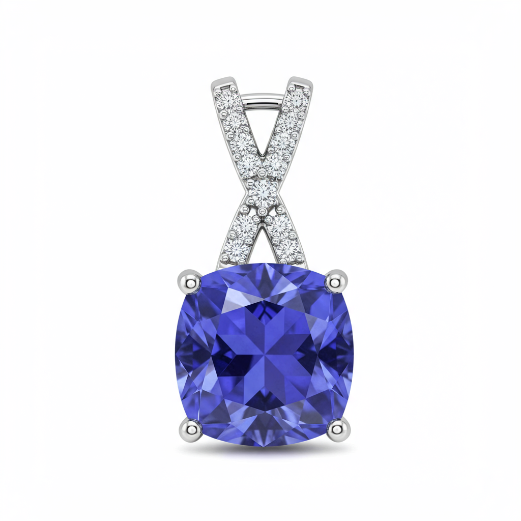 Celebrate the December birth month with this exquisite Tanzanite pendant, expertly crafted in luminous 18KT white gold. The focal point is a vibrant, cushion-cut Tanzanite, known for its mesmerizing violet-blue hues. This central stone is elegantly suspended from a pave-set diamond bail, adding exceptional brilliance and fire. This heirloom-quality necklace makes a deeply personal and luxurious gift.