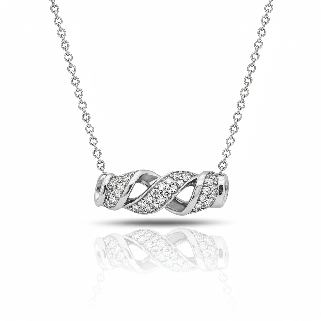 The Evry Jewels Necklace is an exemplar of minimalist luxury, featuring a slender horizontal bar exquisitely paved with brilliant VVS diamonds. Crafted in luminous 18KT white gold, this piece offers a contemporary yet timeless aesthetic designed for daily wear or sophisticated layering. Each stone is meticulously set, ensuring maximum light return and a continuous stream of captivating sparkle. This necklace represents the perfect harmony of modern design and classic heirloom quality, making it an essential addition to any fine jewelry collection.