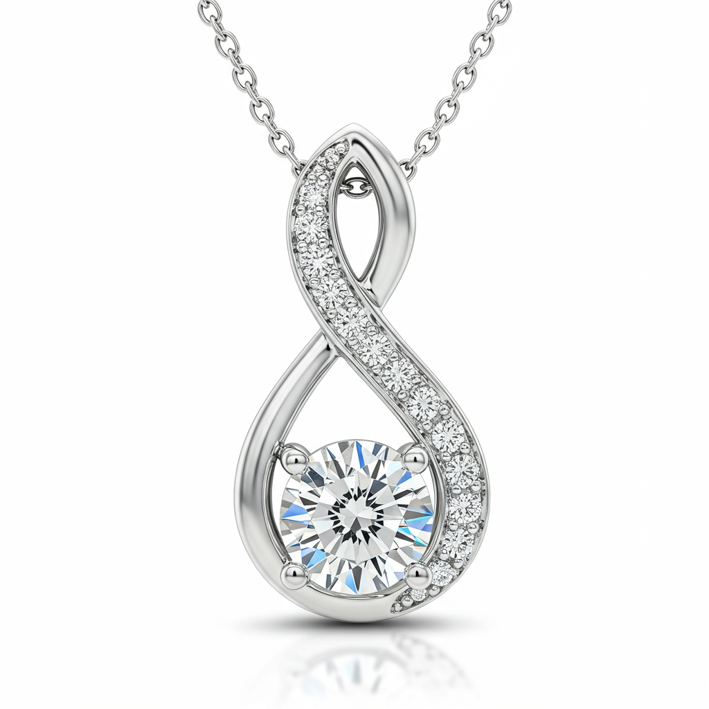 This exquisite Father Daughter Necklace is designed as a symbol of unending love and connection. Crafted in brilliant 18KT white gold, the design features a stunning VVS diamond solitaire centerpiece, representing the profound bond. Subtle pave accents enhance the brilliance of the main stone, providing a luxurious shimmer. This piece serves as a beautiful, enduring heirloom, perfect for commemorating life's most cherished relationship.