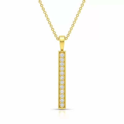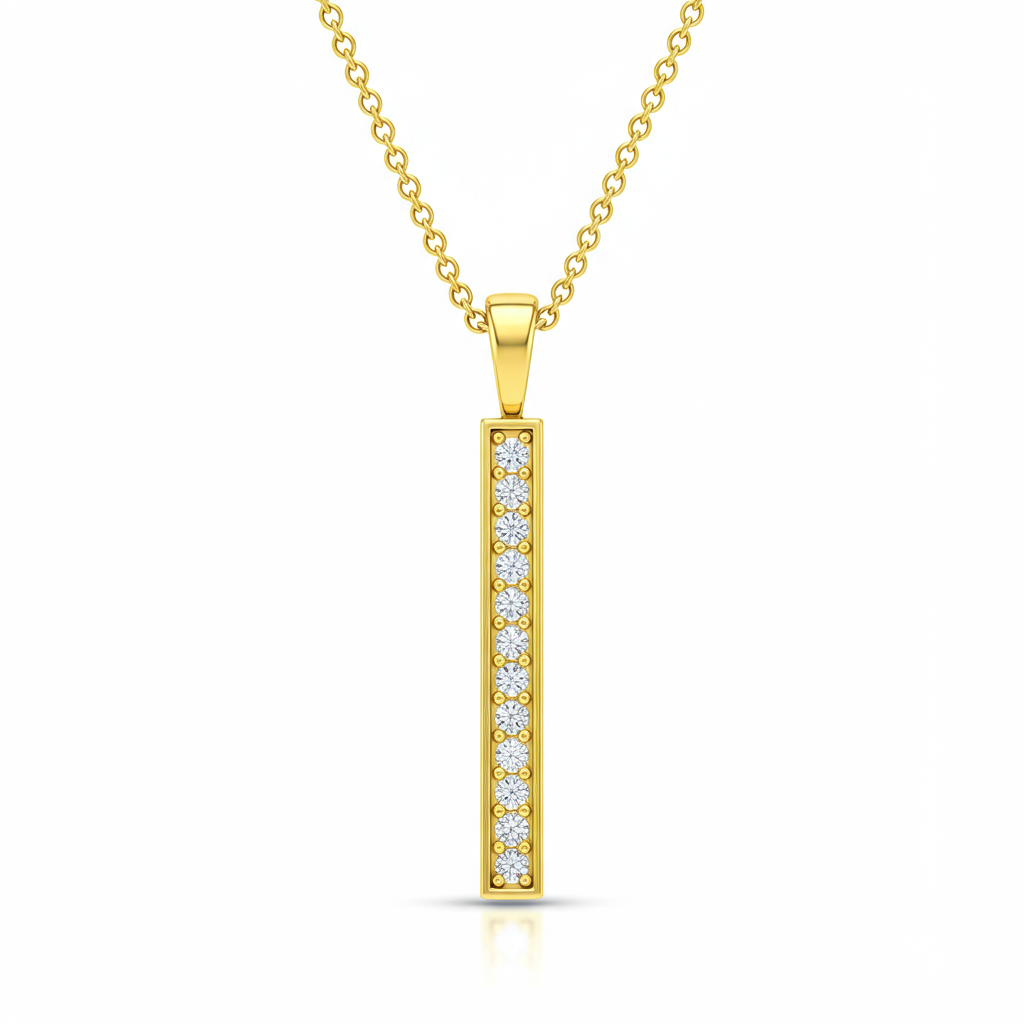 The Gold Bar Necklace embodies minimalist luxury with architectural precision. This contemporary piece features a perfectly polished 18KT gold bar, detailed with a subtle row of micro-pave diamonds along its face. Suspended from a delicate yet strong chain, the pendant catches the light beautifully, symbolizing strength and refined taste. It is an ideal piece for sophisticated daily wear or layering with other fine jewelry necklaces.