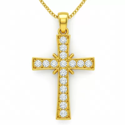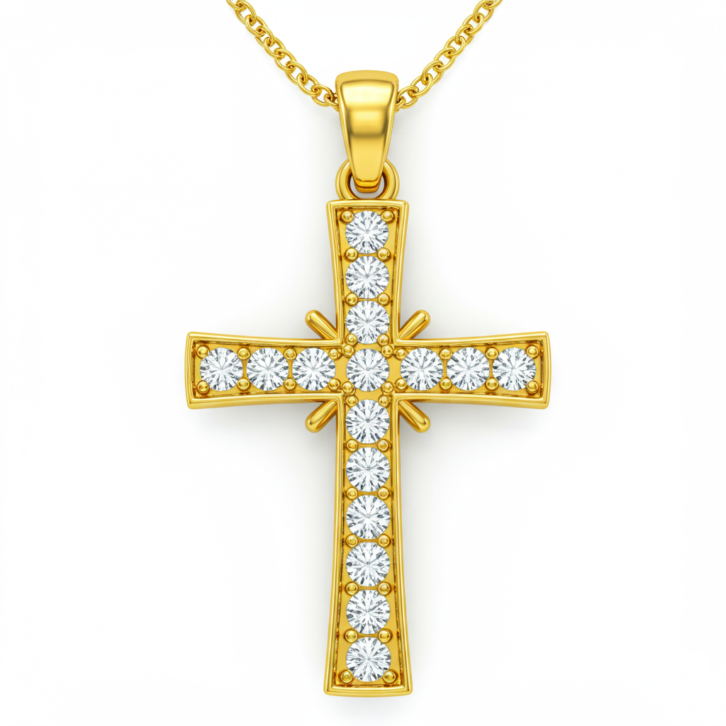 The Gold Cross Necklace is a timeless expression of faith and elegance, meticulously crafted in radiant 14K Yellow Gold. This delicate piece features a slender cross silhouette pave-set with brilliant, high-clarity diamonds that catch the light from every angle. Suspended from a graceful matching chain, the pendant rests perfectly at the décolletage. It serves as an enduring symbol of devotion and a sophisticated daily staple piece.