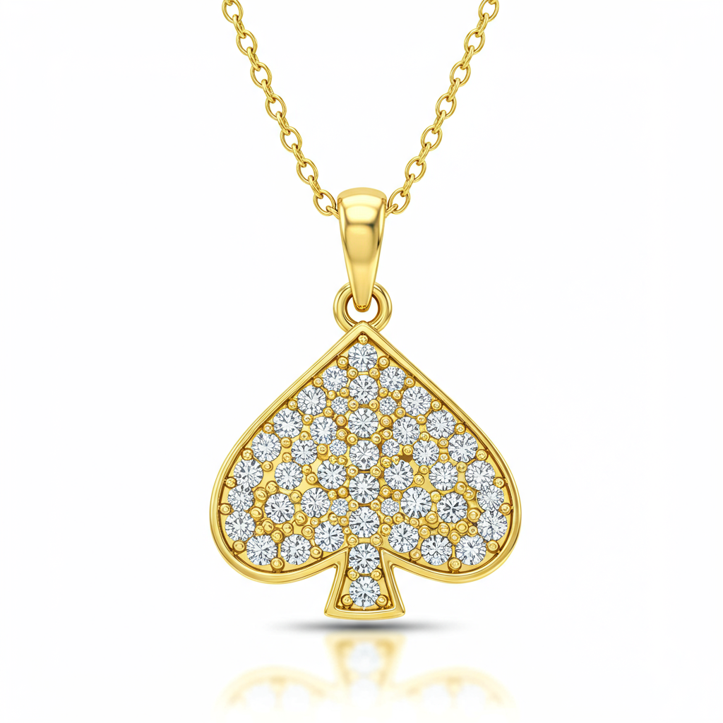 The Kate Spade Spade Necklace is an exquisite tribute to iconic design, featuring the signature spade motif meticulously rendered in polished 18KT yellow gold. This delicate pendant is pavé-set with brilliant VVS diamonds, creating a continuous stream of scintillating light. Suspended from a slender cable chain, the piece rests elegantly against the collarbone, symbolizing luck and modern luxury. It is a timeless accessory designed for everyday sophistication. This high-end piece elevates any ensemble with understated glamour.