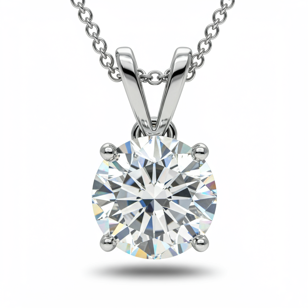 The Lab Created Diamond Necklace embodies timeless elegance, showcasing a brilliant-cut center stone held securely in a refined 18KT white gold setting. This exquisite piece utilizes ethically sourced lab-grown diamonds, offering unparalleled fire and scintillation. Suspended from a delicate adjustable chain, the solitaire design makes it perfect for daily wear or sophisticated evening events. It represents modern luxury combined with exceptional craftsmanship.