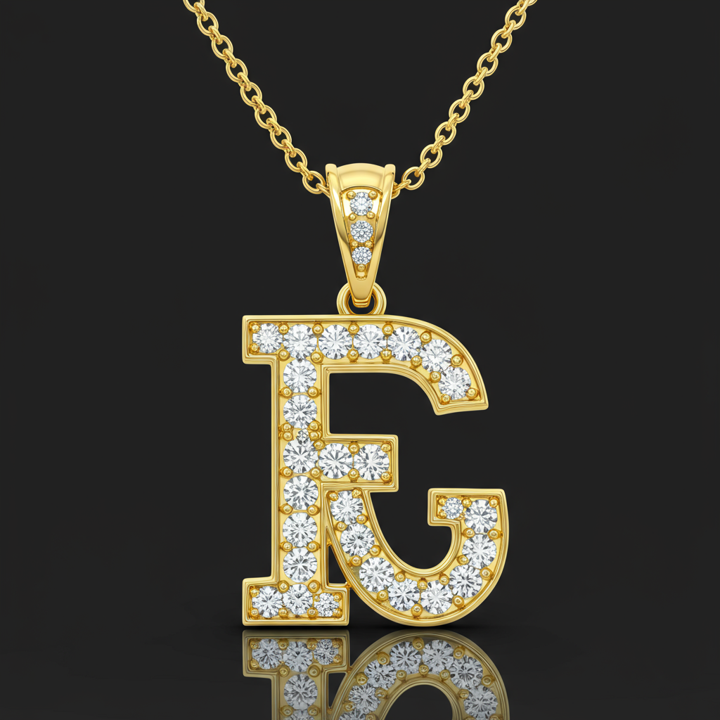 The Letter Necklace Gold is a timeless expression of self, meticulously crafted in radiant 18KT yellow gold. Each personalized initial is delicately pave-set with conflict-free VVS brilliant-cut diamonds, maximizing sparkle and elegance. Suspended from a graceful 16-inch chain, this piece rests perfectly on the collarbone, offering a subtle yet luxurious statement. This necklace serves as an intimate signature piece or the perfect cherished gift.