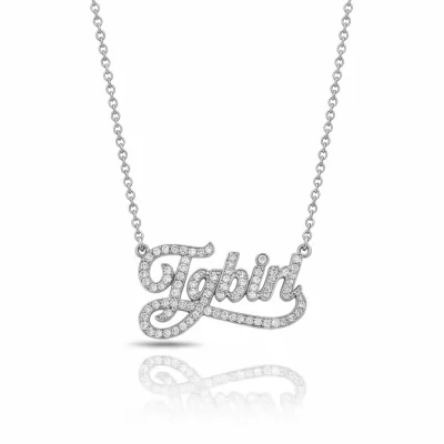 The Name Necklace For Women offers a sophisticated and deeply personal statement, meticulously crafted in radiant 18KT White Gold. This custom piece features your chosen name rendered in an elegant script, perfectly adorned with brilliant-cut diamonds. Each VVS clarity diamond is meticulously hand-set to maximize scintillation, creating a continuous stream of light and luxury. It is an exquisite heirloom piece designed for daily wear or celebrating a significant life moment, embodying timeless elegance and individuality.