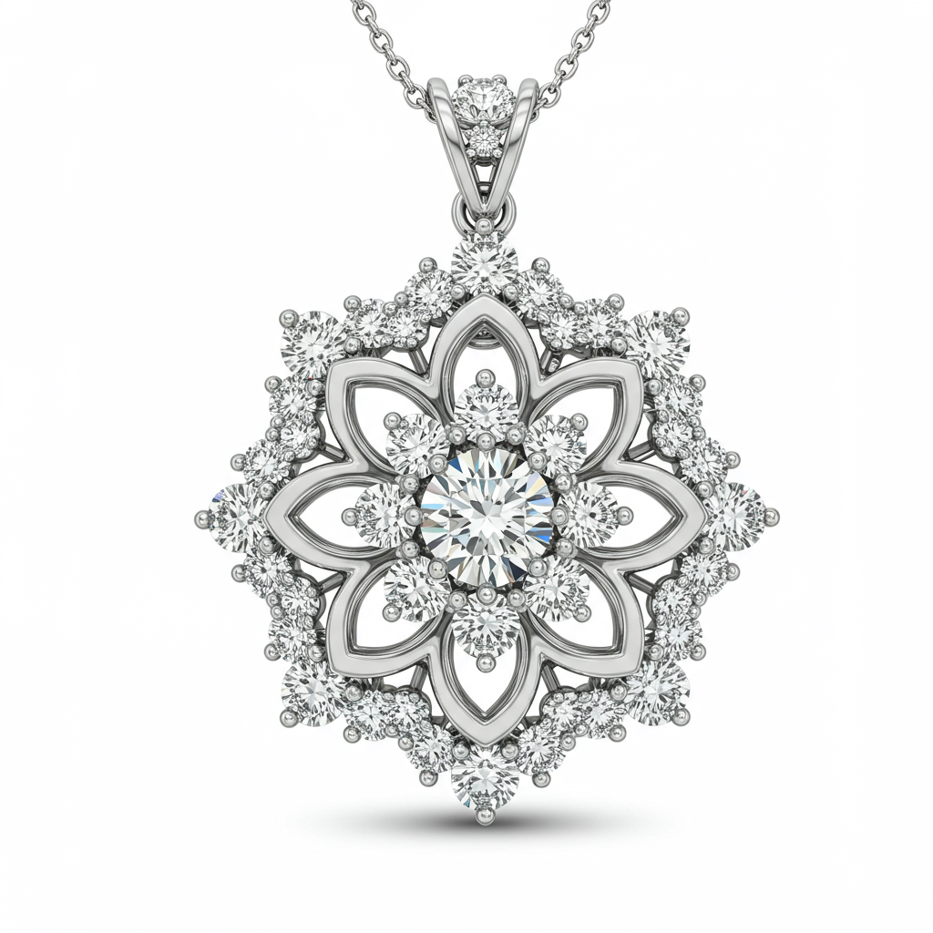 The Pandora Necklace captures eternal elegance with its meticulously crafted cluster pendant. Featuring a brilliant halo design, the central VVS diamond is encircled by a constellation of smaller, perfectly matched stones. Set in luxurious 18KT white gold, this piece offers exceptional sparkle and sophisticated refinement. It is the perfect signature accessory for commemorating life’s most cherished moments, symbolizing enduring love and commitment.