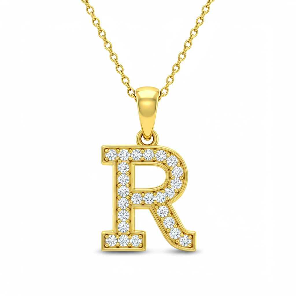 The Personalized Gold Necklace is the ultimate symbol of individuality and elegance. Crafted in radiant 18KT yellow gold, this piece features a custom initial pendant meticulously paved with brilliant VVS quality diamonds. Suspended from a delicate adjustable chain, it offers a subtle sparkle that catches the light beautifully. This timeless heirloom is designed to celebrate personal identity and makes a perfect signature accessory or meaningful gift.