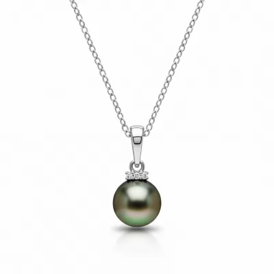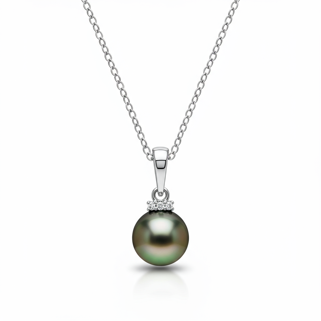 This exquisite Single Pearl Necklace offers timeless elegance, featuring a magnificent 10mm Tahitian Round Pearl as its focal point. The pearl is suspended from a delicate 18KT white gold bail, subtly accented by five brilliant VVS diamonds. This classic solitaire design embodies refined luxury and sophisticated simplicity. It is the perfect piece for commemorating milestones or as an essential addition to a high-end jewelry collection. The minimalist setting allows the pearl's natural luster and beauty to shine unimpeded.