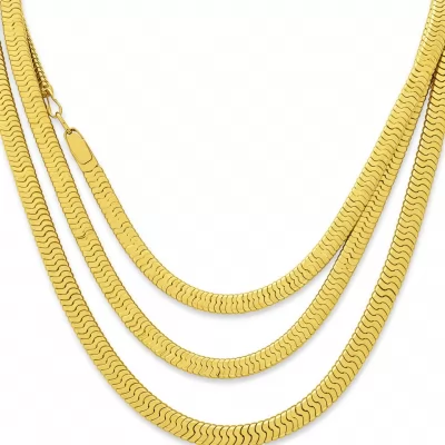 This Snake Chain Necklace epitomizes liquid elegance and sophisticated design. Crafted in luminous 18KT yellow gold, its finely linked structure creates a sleek, continuous flow that rests beautifully against the collarbone. The highly polished surface catches the light effortlessly, offering a refined, mirror-like finish. This piece is perfect for layering or wearing solo as a statement of understated luxury, designed for enduring comfort and style.