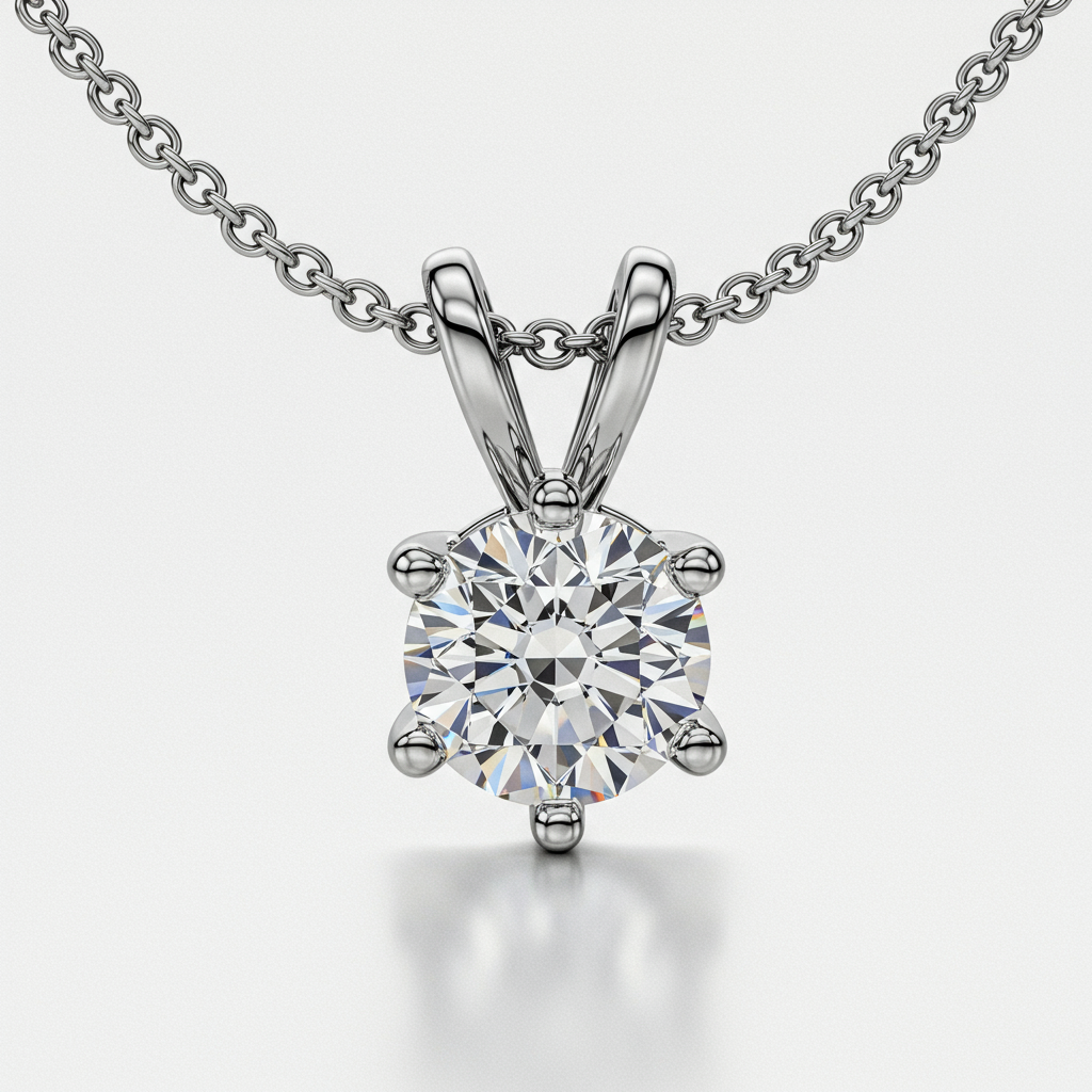 The Tiffany Diamond Necklace epitomizes timeless elegance, centered around a spectacular 1.50 carat round brilliant diamond secured in a classic six-prong setting. Suspended on a delicate 18KT white gold cable chain, this piece ensures maximum light reflection and unparalleled brilliance. The VVS clarity and G color grading guarantee exceptional purity and fire. This iconic design serves as the ultimate symbol of love and sophistication, perfect for milestone celebrations or cherished daily wear.