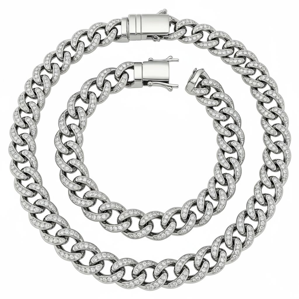 This master chain design elegantly integrates the strength of a Curb link with the delicate complexity of a Rope weave, creating a truly unique statement piece. Crafted in radiant 18KT white gold, the intricate links are meticulously micro-paved with high-clarity diamonds, offering unparalleled brilliance from every angle. It serves as a comprehensive study of classic chain artistry elevated by contemporary diamond setting techniques. This versatile piece is an essential addition to any sophisticated jewelry collection, representing both tradition and modern luxury.