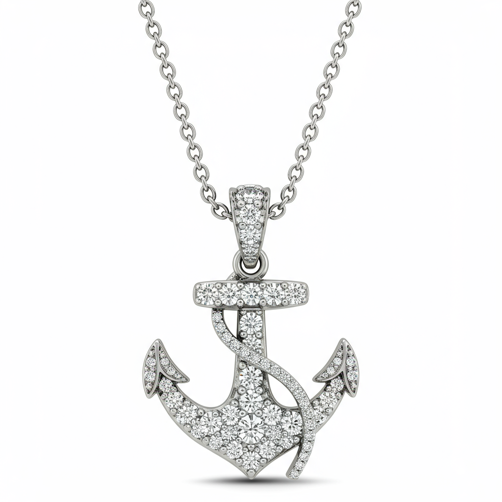 The Anchor Necklace embodies maritime elegance and enduring strength. Crafted in radiant 18KT white gold, the classic anchor motif is meticulously set with 0.65 carats of brilliant VVS round diamonds. This stunning piece symbolizes stability and hope, making it the perfect heirloom accessory. Suspended from a delicate yet strong chain, this pendant offers a sophisticated sparkle suitable for daily wear or special occasions.