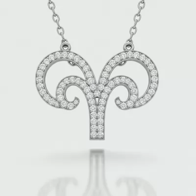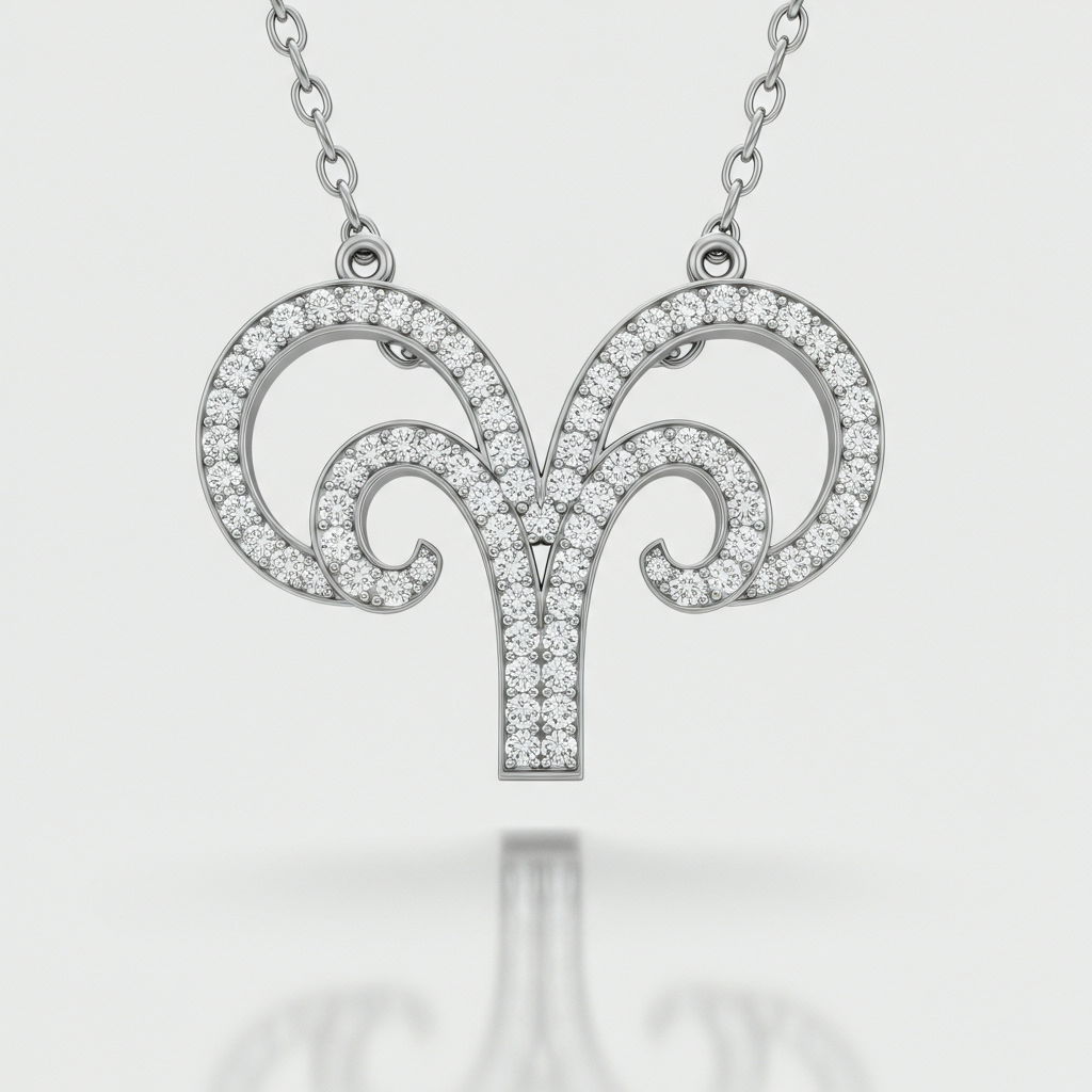 Celebrate your astrological identity with the celestial Aries Necklace. Crafted in luminous 18KT white gold, this pendant features the bold Ram symbol meticulously outlined in pavé-set VVS diamonds. The design captures the fierce determination and pioneering spirit characteristic of the Aries sign. It hangs gracefully on a delicate chain, making it a perfect statement of personal style and sophisticated luxury.
