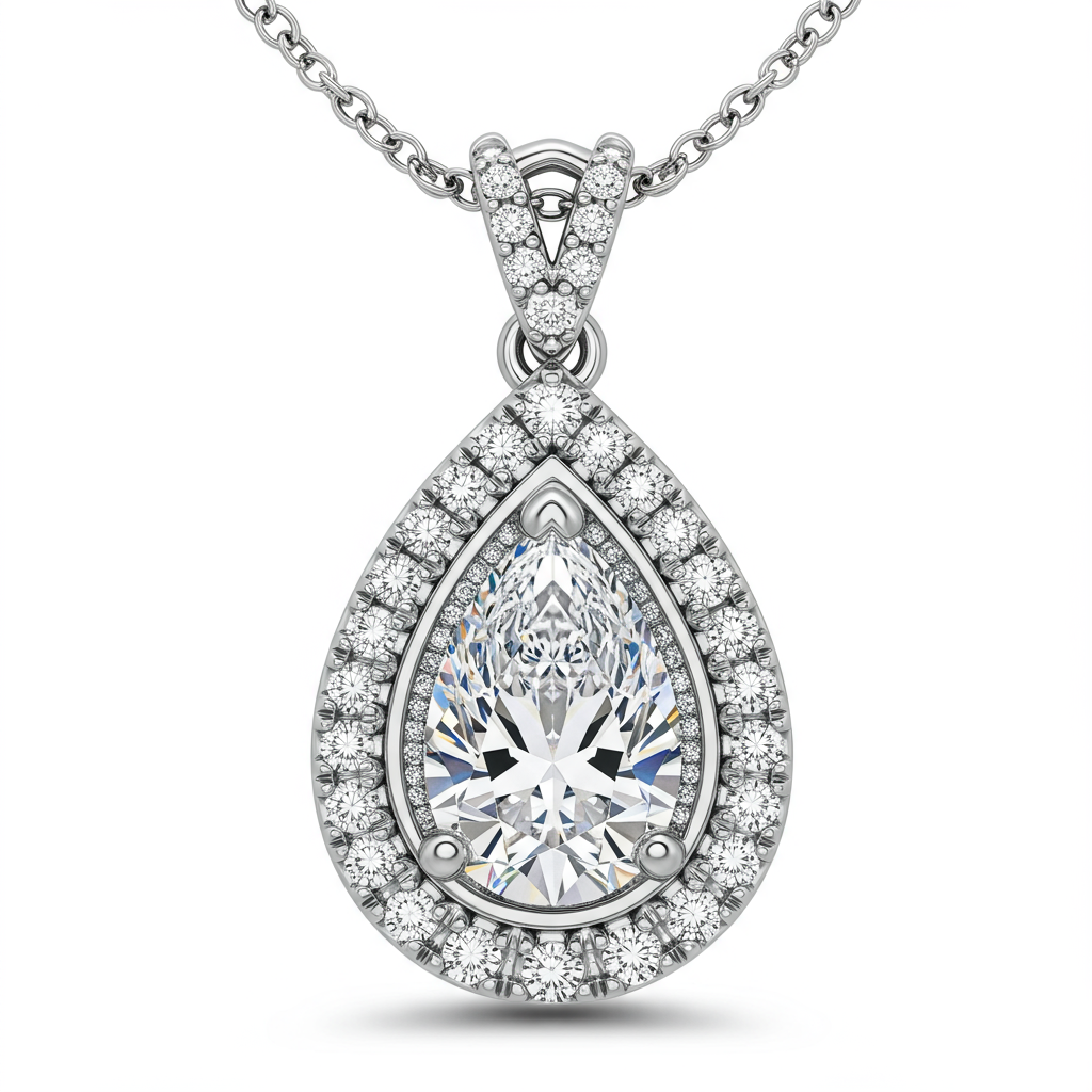 The Arwen Evening Star Necklace captures celestial beauty in 18KT white gold, symbolizing eternal commitment and grace. A breathtaking 0.75 carat Pear-cut VVS diamond forms the centerpiece, suspended within a delicate, intricate filigree framework. This stunning drop pendant is enhanced by thirty-six meticulously set round pave diamonds, ensuring unparalleled brilliance from every angle. This heirloom-quality piece is designed to illuminate any formal occasion with timeless elegance and ethereal charm.